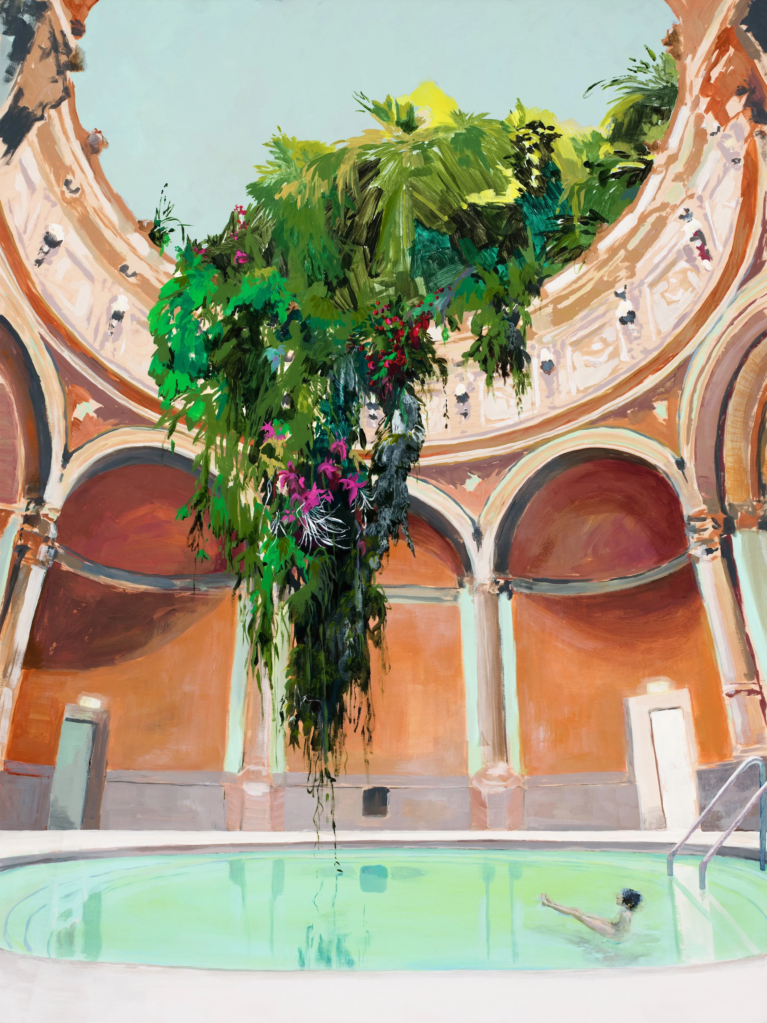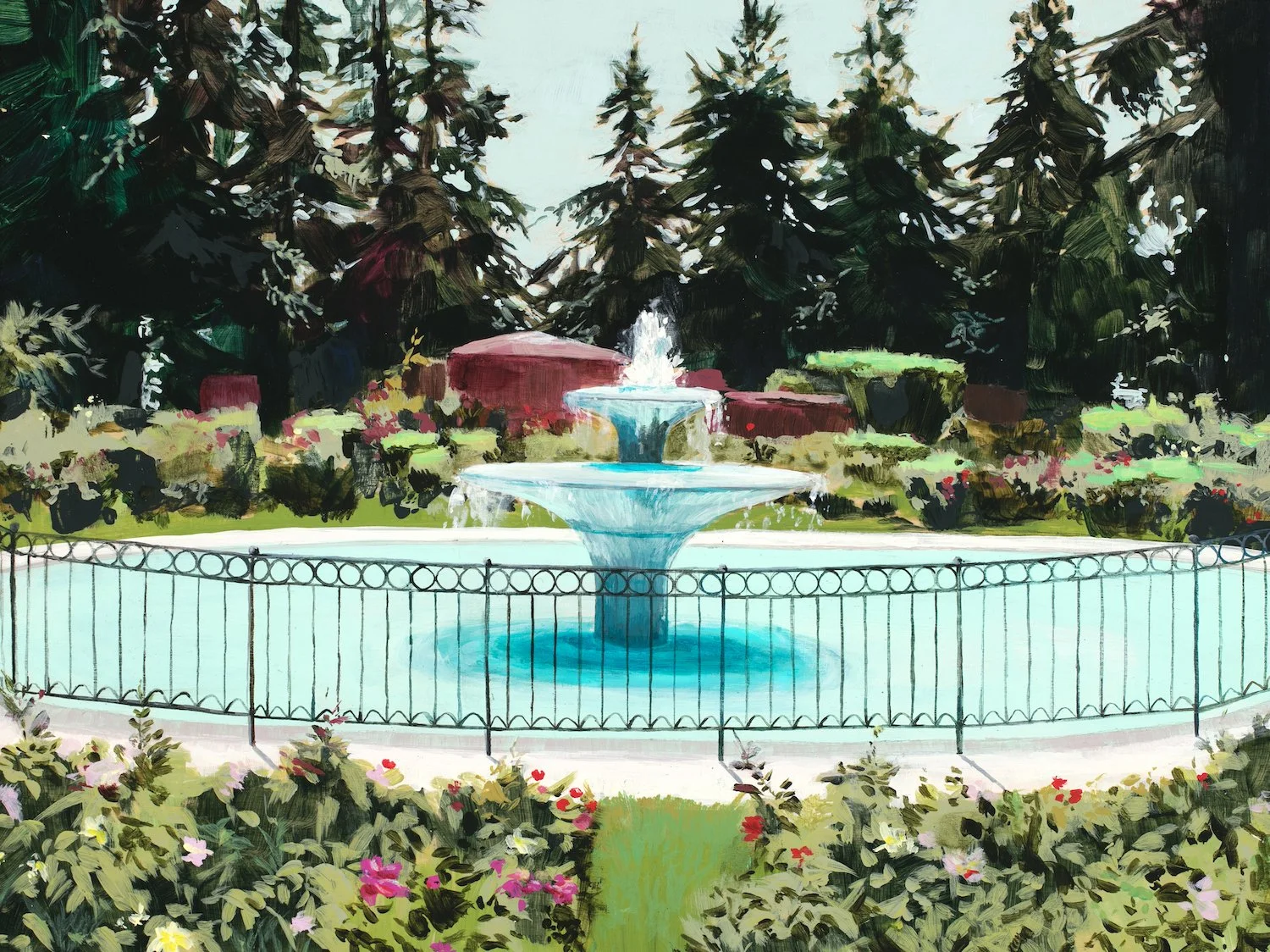 Poolside, 14” x 11”, Oil and acrylic on panel. SOLD
