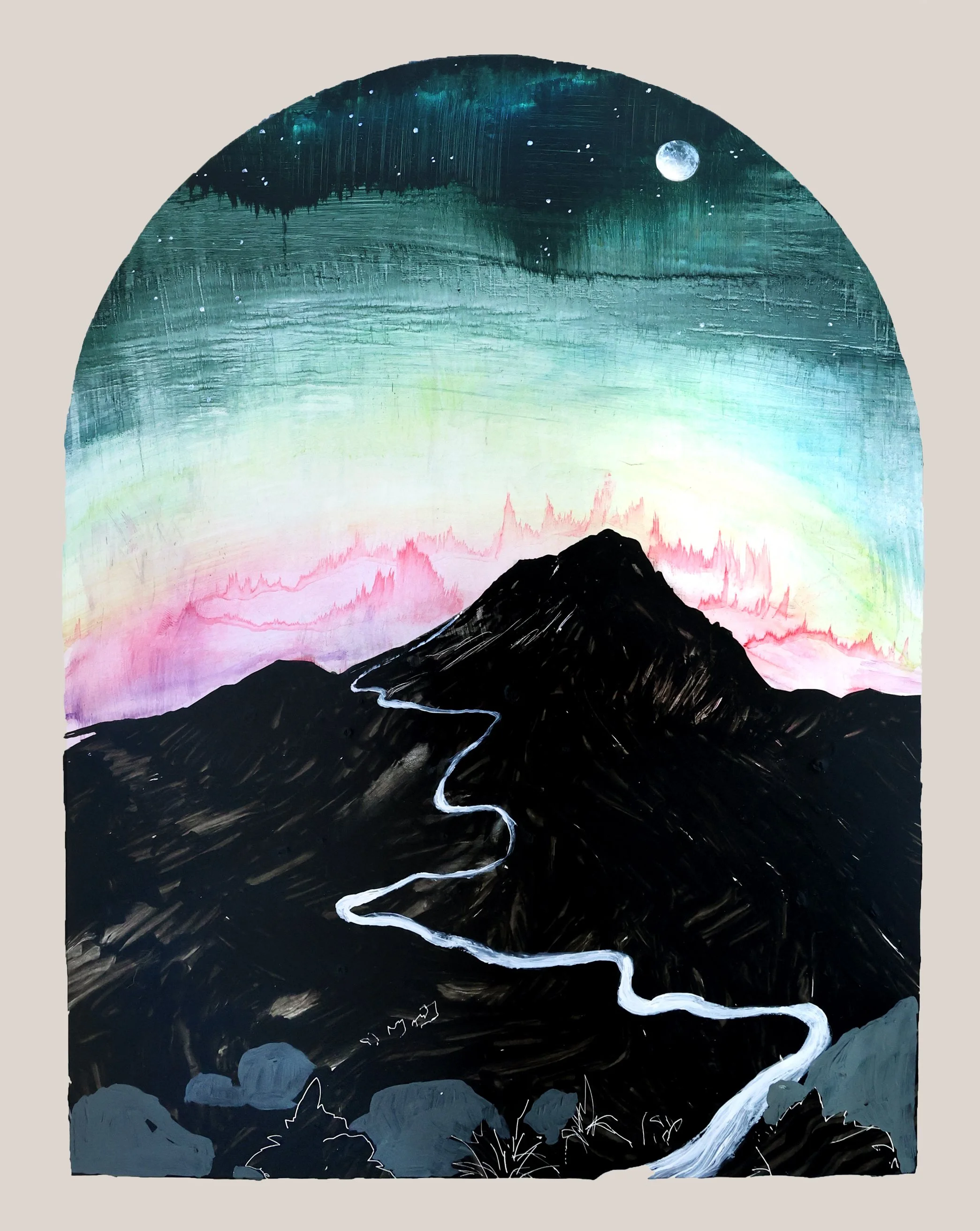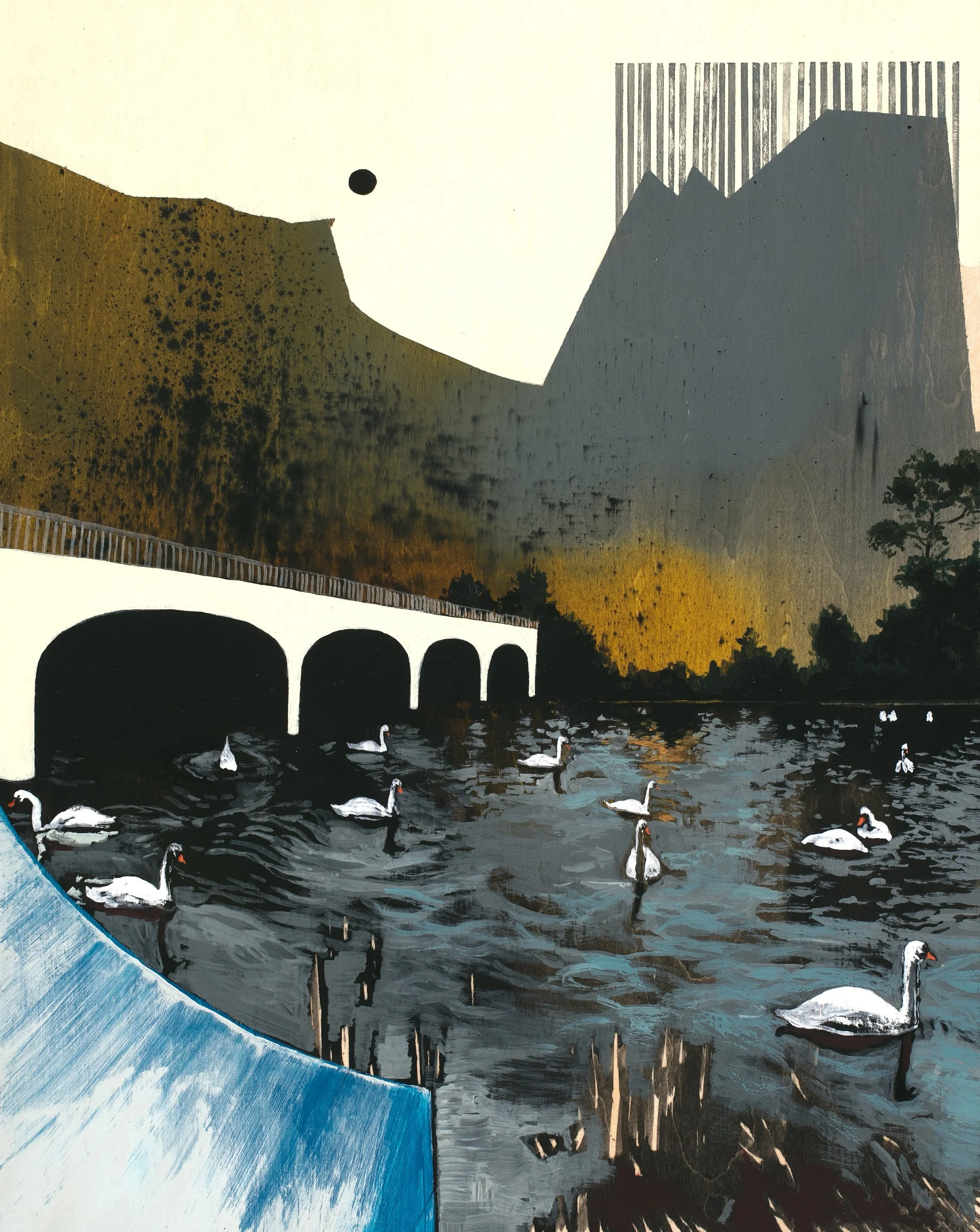 Hyde at Dawn, 11 x 14”, Sumi inks, acrylic inks, acrylic and gouache on panel. SOLD