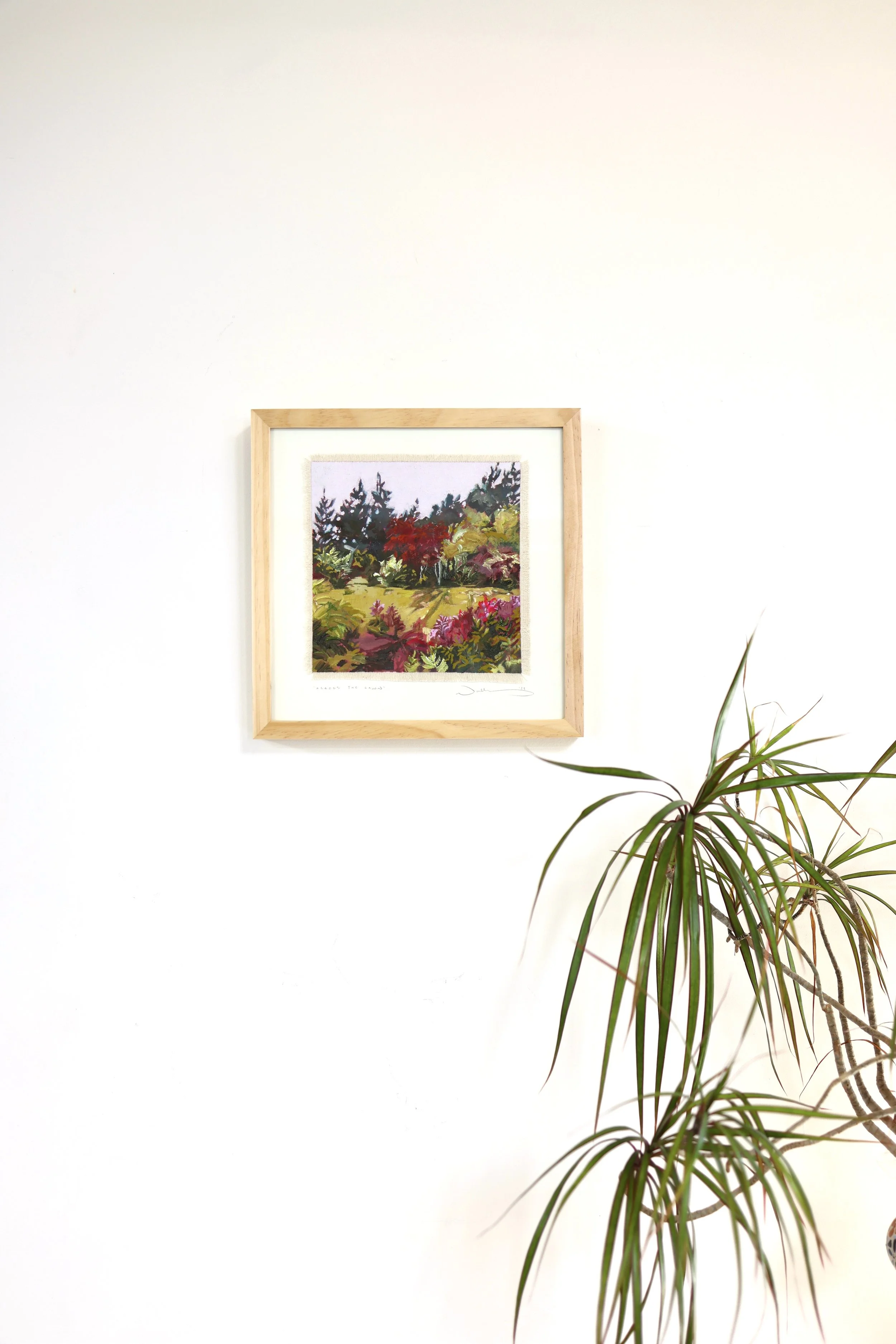 A view of my garden in coastal Washington. This piece was part of my collection “Cardinal Spring” for Nahcotta gallery in 2023.