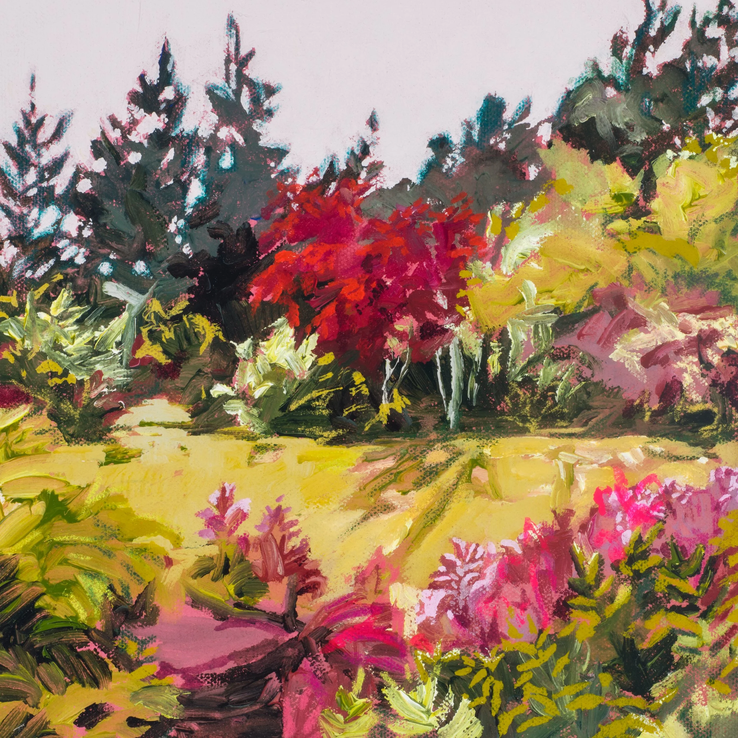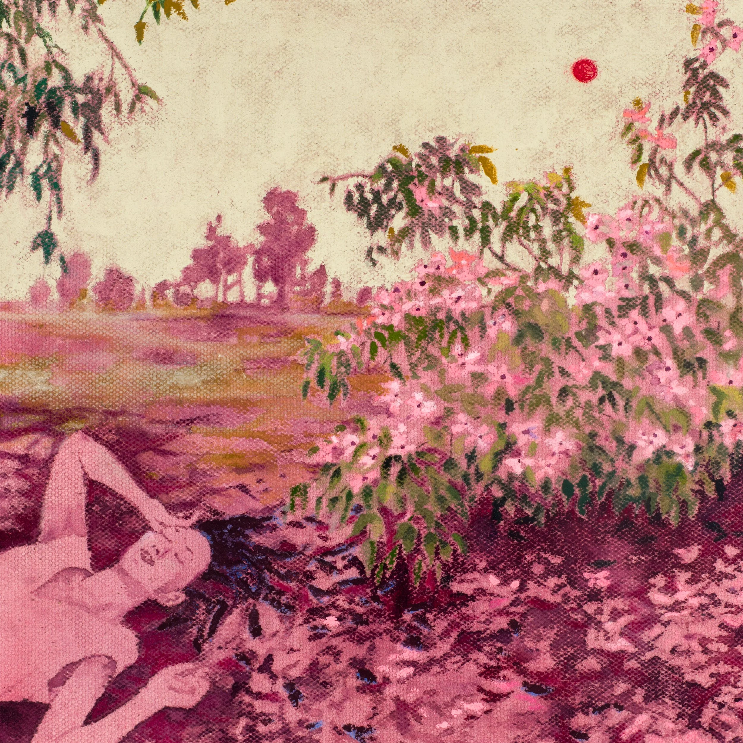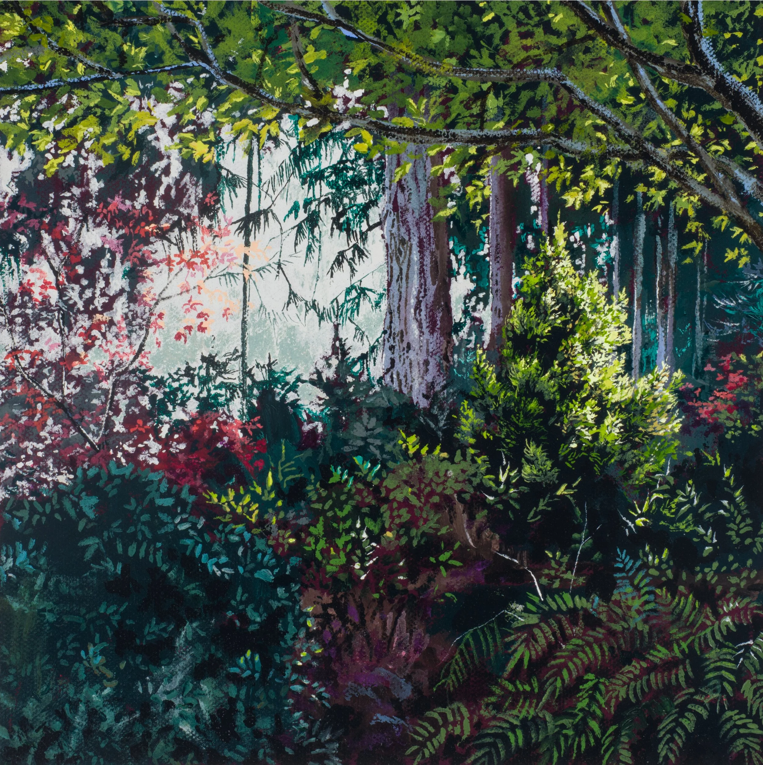 I have a small collection of new small original works entitled “Cardinal Spring” in Nahcotta Gallery’s annual Enormous Tiny Art group show. The works in this collection are studies of my gardens in coastal Washington in Gig Harbor (near Seattle). Each piece was conceived of and started while I was in Washington this spring and summer and completed in my studio in Colorado. Painted with a variety of mediums on raw St. Mary’s cotton canvas, they explore the textures and tones of the gardens during the lushest months of the year, a spring that was my first spent tending to these gardens and also my first spring as a mother. The newness of both these conditions granted me the gift of new perspective as I sought out the details in every corner with the intention of discovering them for myself, and to share them with my new daughter. Creating the collection was an exercise in paying attention to the quiet extravagance of life.