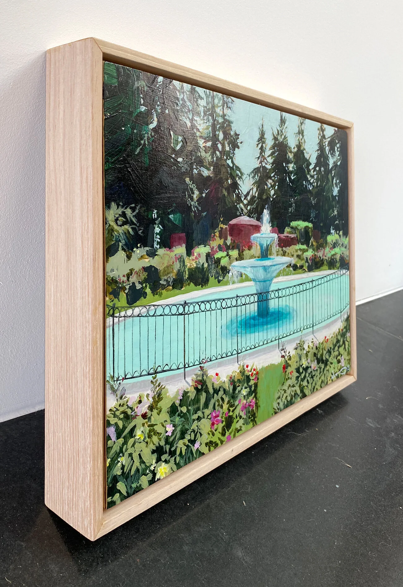 A Fragrant Cloud is a species of rose that grows in the San Jose Municipal Rose Garden, the subject of this painting. I referenced a photo taken by my friend Rachel DeGeorge, while painting it, thank you for sharing Rachel. I find rose gardens to be a wonderful example of the intersection of intention and coincidence in design. Rose bushes are wild and thorny and beautifully improvised, while the gardens we place them in tend to be highly ordered and manicured. I love how the rounded shapes of the flowers and the bouquet of scents seem to be enhanced by the contrast they make with the neatly planted rows they are forced to thrive in. Numerous folks told me this was their favorite destination for pandemic walks when I shared a progress picture of it, I thought that was nice.