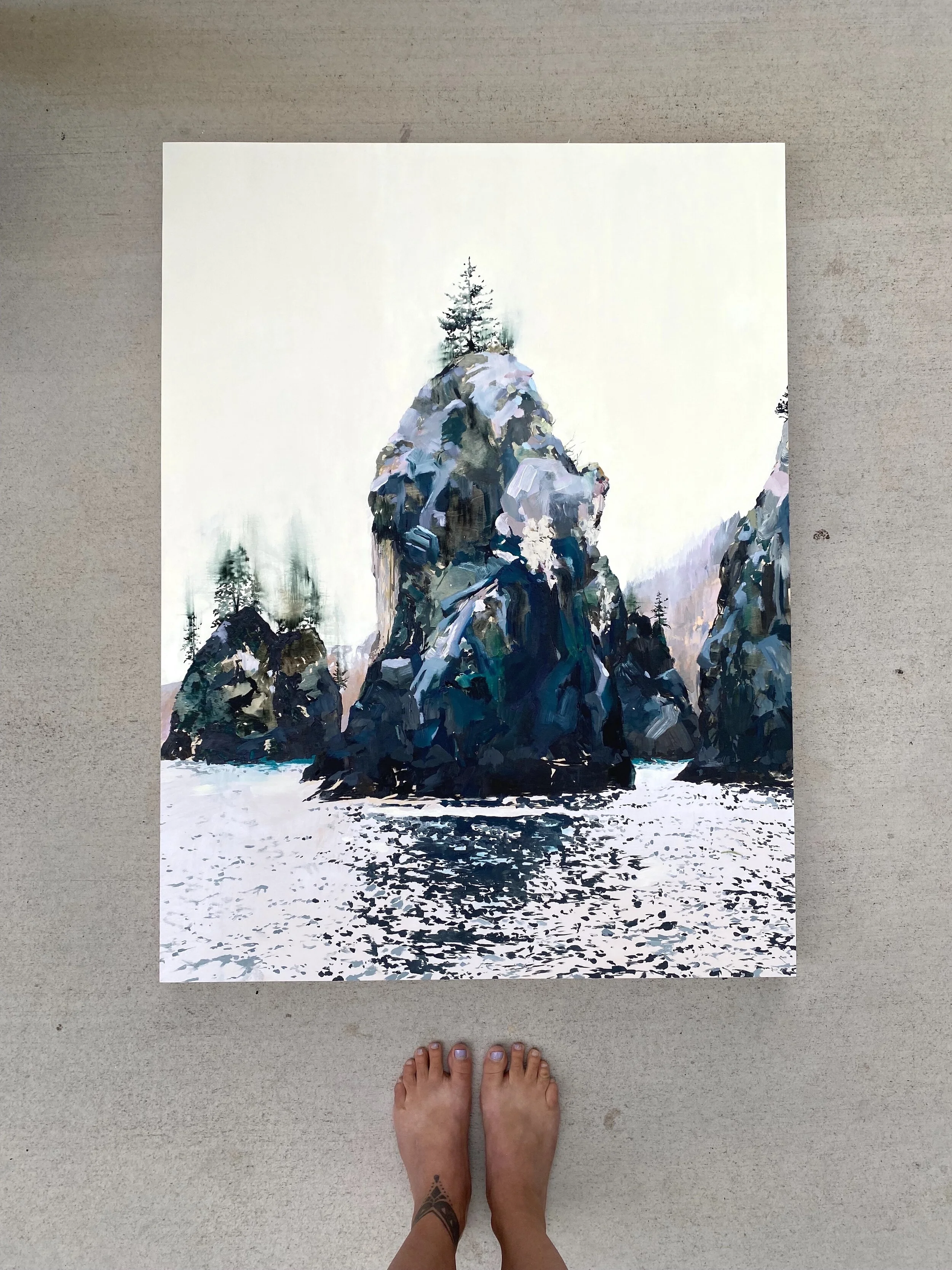 I visited Alaska in July of 2021. As a lover of raw landscape, I was eager to experience the “last great frontier” for myself after years of exploring it only through pictures and stories. It did not disappoint; the vastness of landscape in this part of the world shakes you to your core. The subjects of “Keepers of the Fjords”, the spinal rocky features that poke abrubptly out of the ocean in the Kenai Fjord region, were especially captivating as they reminded me of the stalagmite-like limestone formations in Vietnam’s Ha Long Bay. Seated at the mouth of some of the fjord inlets, they are all that remain of the land that used to stand there, glaciers carving out the area around them, replacing that space with water. They seem to stand guard at these fjordal mouths, protecting the calmer waters behind them and also telling the story of the precious glaciers that recede more each year.