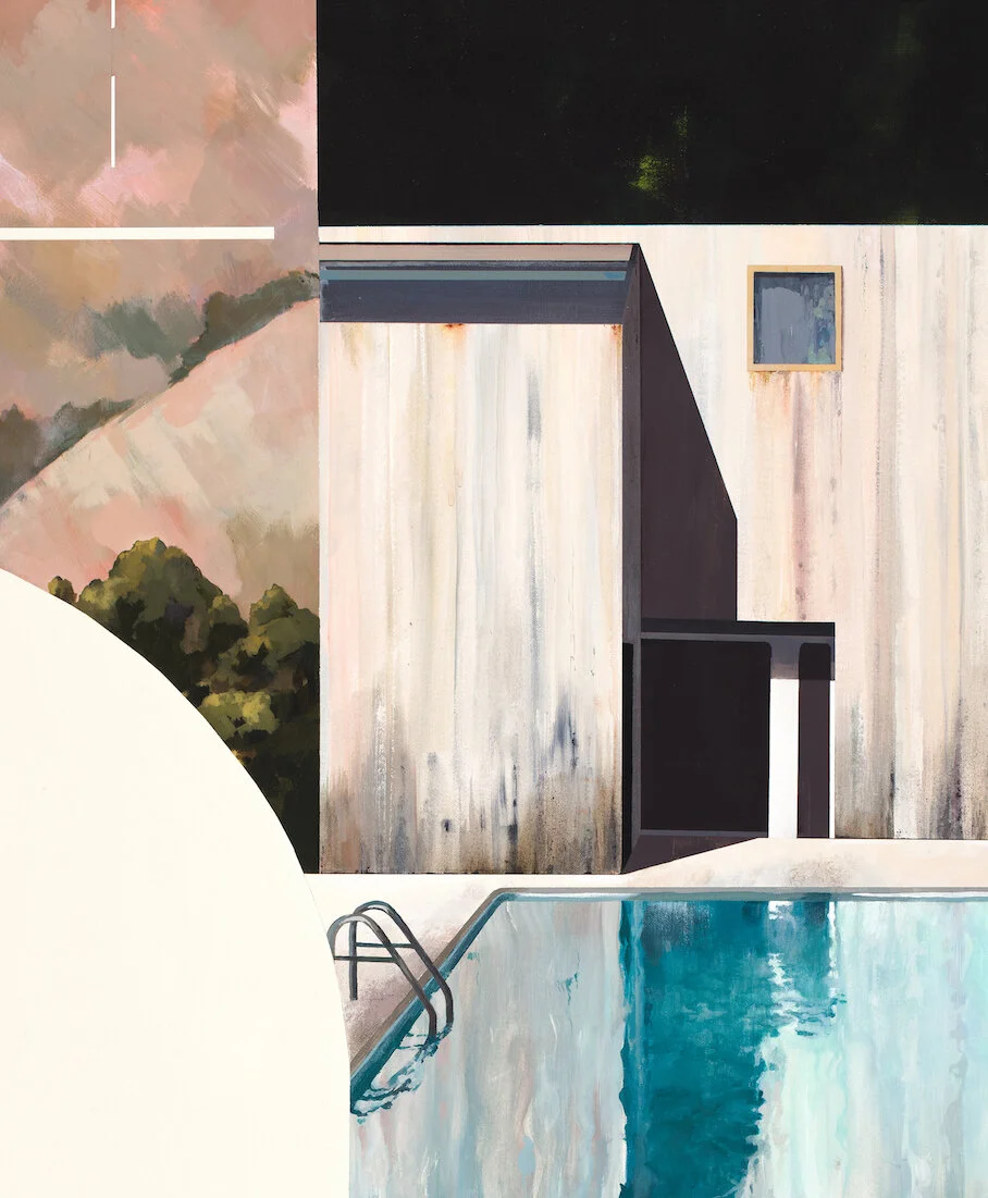 I live in Denver, Colorado now. But my heart remains at least in part on the California coast where I lived for many years and grew up not too far from. My Cup Runneth Over depicts a modern beach house on the northern coast of CA - a partially made-up scene that captures where I at times wished I had been able to spend quarantine. I find the pastel fogs, sweeping yet soft bluffs, and the more rustic architectural styles of the northern coast vs. the southern coast of CA to speak more truly to my heart than any other place on the planet. This scene combines elements from landscapes on Mount Tamalpais near San Francisco, Mendocino (where I was supposed to get married on Sept. 6, but - coronavirus), and Sea Ranch where the reference photo for the driftwood-textured structure was pulled directly from. The linework on the upper left symbolizes the comfort of neighborhood, especially during isolation. Thank you for the reference photo, Blake! My cup truly runneth over when I imagine spending time in this place that fuses treasures from nature and tasteful structure.