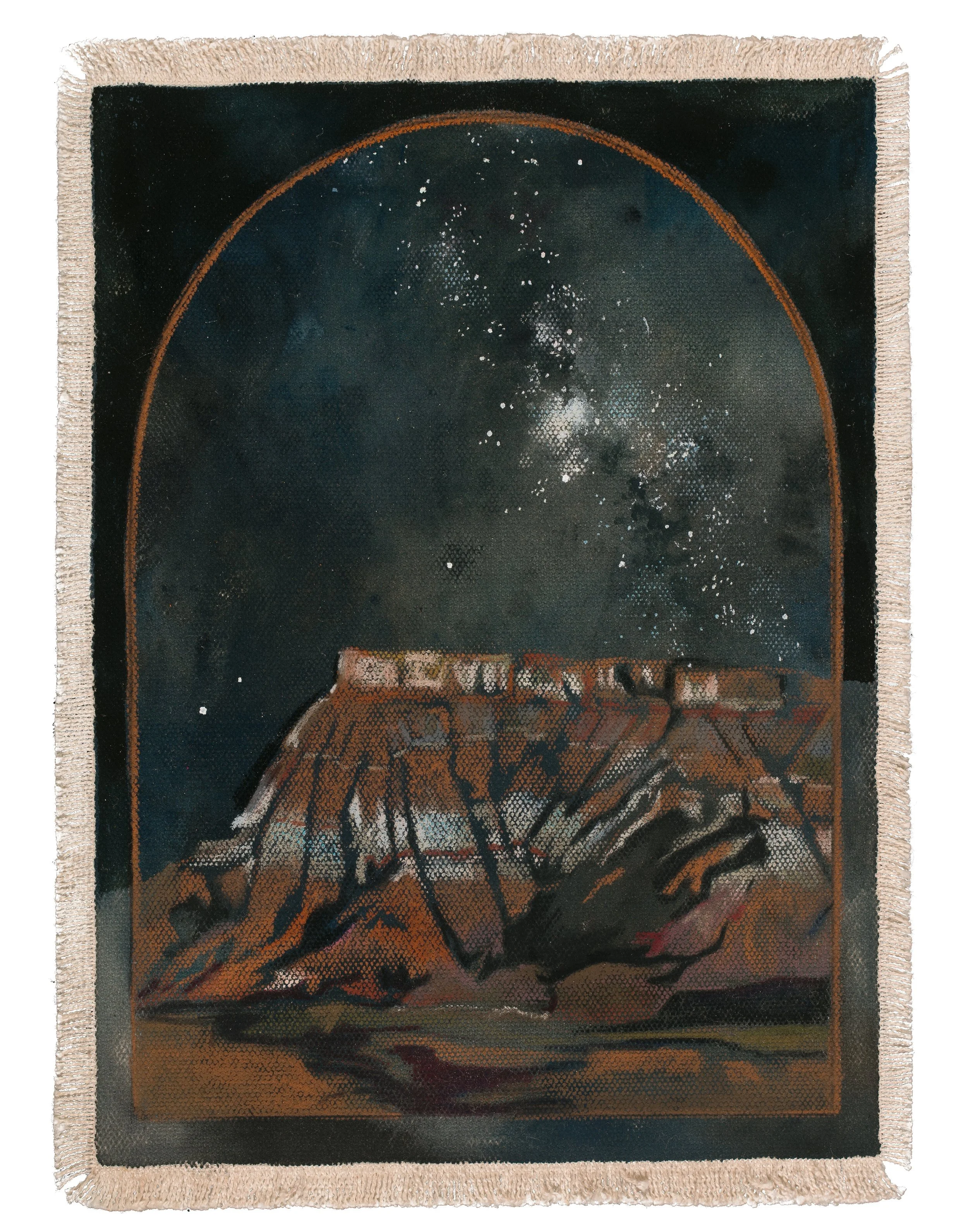 Acrylic, gouache, and colored pencil on St. Mary’s Cotton