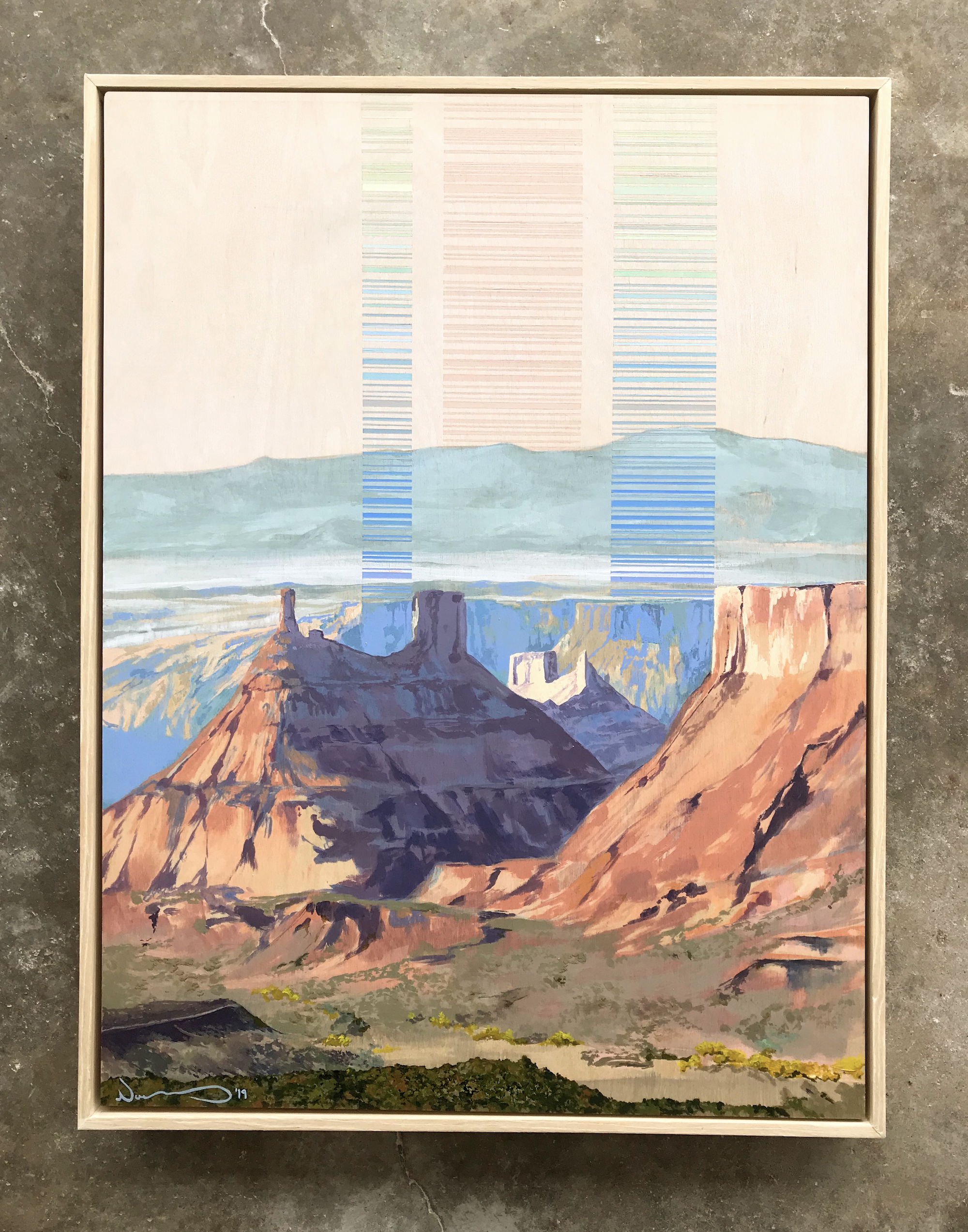 Soloist depicts Castleton Tower, one the American West’s most iconic desert towers outside of Moab, Utah. The delicate linework ascending from the shadows of the canyon are symbolic of the relationship that many humans have with this place. Castleton Tower is a big climbing destination, thus many of its visitors trek to this place in the hopes of ascending it. The title is a reflection of both the sense of peaceful isolation that desert travelers can experience, as well as the goal that some climbers have of solo climbing Castleton.